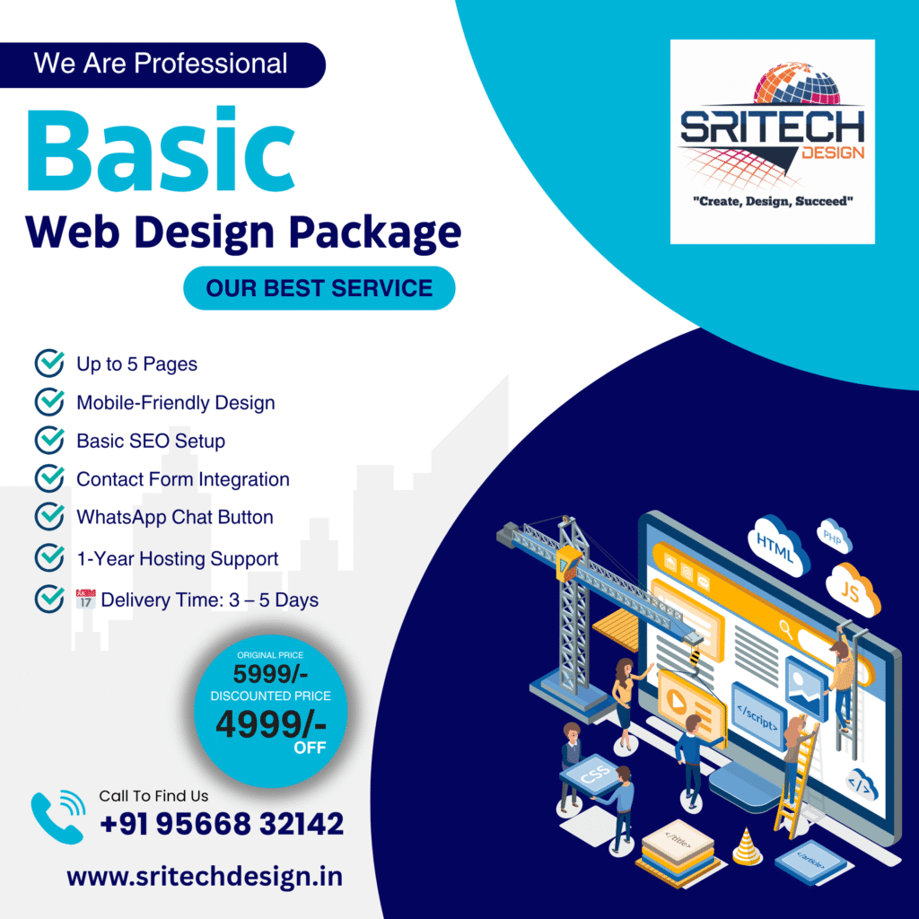 At Sri Tech Design, we specialize in creating affordable, professional websites for freelancers, startups, and small businesses. With our personalized support, quick delivery, and clean designs, we help you build your brand online with confidence and clarity.